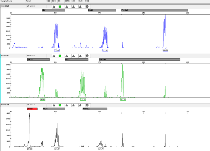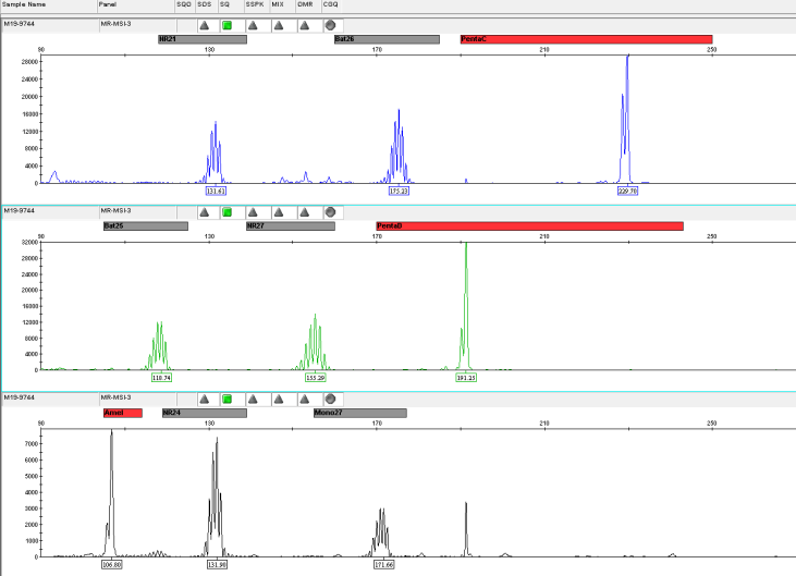 微衛(wèi)星是人類基因組的一段串聯(lián)重復(fù)序列,一般在1~6bp之間,又被稱作短串連重復(fù)(Short Tandem Repeats,STRs)或簡單重復(fù)序列(Simple Sequence Repeat,SSRs)。 微衛(wèi)星不穩(wěn)定(Microsatellite Instability,MSI)指的是微衛(wèi)星重復(fù)次數(shù)減少或者增加,微衛(wèi)星不穩(wěn)定的內(nèi)在機(jī)制是錯(cuò)配修復(fù)(MMR)系統(tǒng)失調(diào),從而限制了糾正微衛(wèi)星自發(fā)的長度改變的體細(xì)胞突變的能力,體細(xì)胞突變積累,最終形成MSI。