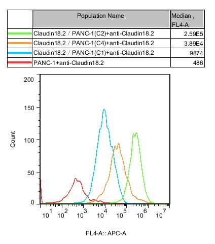 Claudin18是位于細(xì)胞膜表面緊密連接的主要成分,它在維持細(xì)胞極性和屏障功能以及促進(jìn)耐酸能力方面起著重要作用。CLDN18的第一個(gè)外顯子可以選擇性剪接,形成兩個(gè)具有高度同源氨基酸序列的不同剪接突變體(CLDN18.1和CLDN18.2)??缒さ鞍證LDN18由兩個(gè)細(xì)胞外環(huán)、四個(gè)跨膜結(jié)構(gòu)域和一個(gè)細(xì)胞質(zhì)結(jié)構(gòu)域組成。 |