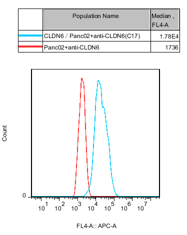 CLDNs 是上皮細胞緊密連接的主要成分。CLDN6 是緊密連接家族(CLDNs)的一員,是一個四次跨膜蛋白,具有較短的胞質(zhì) N 端和 C 端胞質(zhì)結構域、兩個胞外結構域(較大的 ECL1 和較小的 ECL2)和一個短的胞內(nèi)環(huán)。CLDN6 可參與乳腺癌、胃癌、肝細胞癌等多種惡性腫瘤的發(fā)生發(fā)展。CLDN6 具有重要的生物學功能,其異常表達與丙型肝炎感染有關。 | |