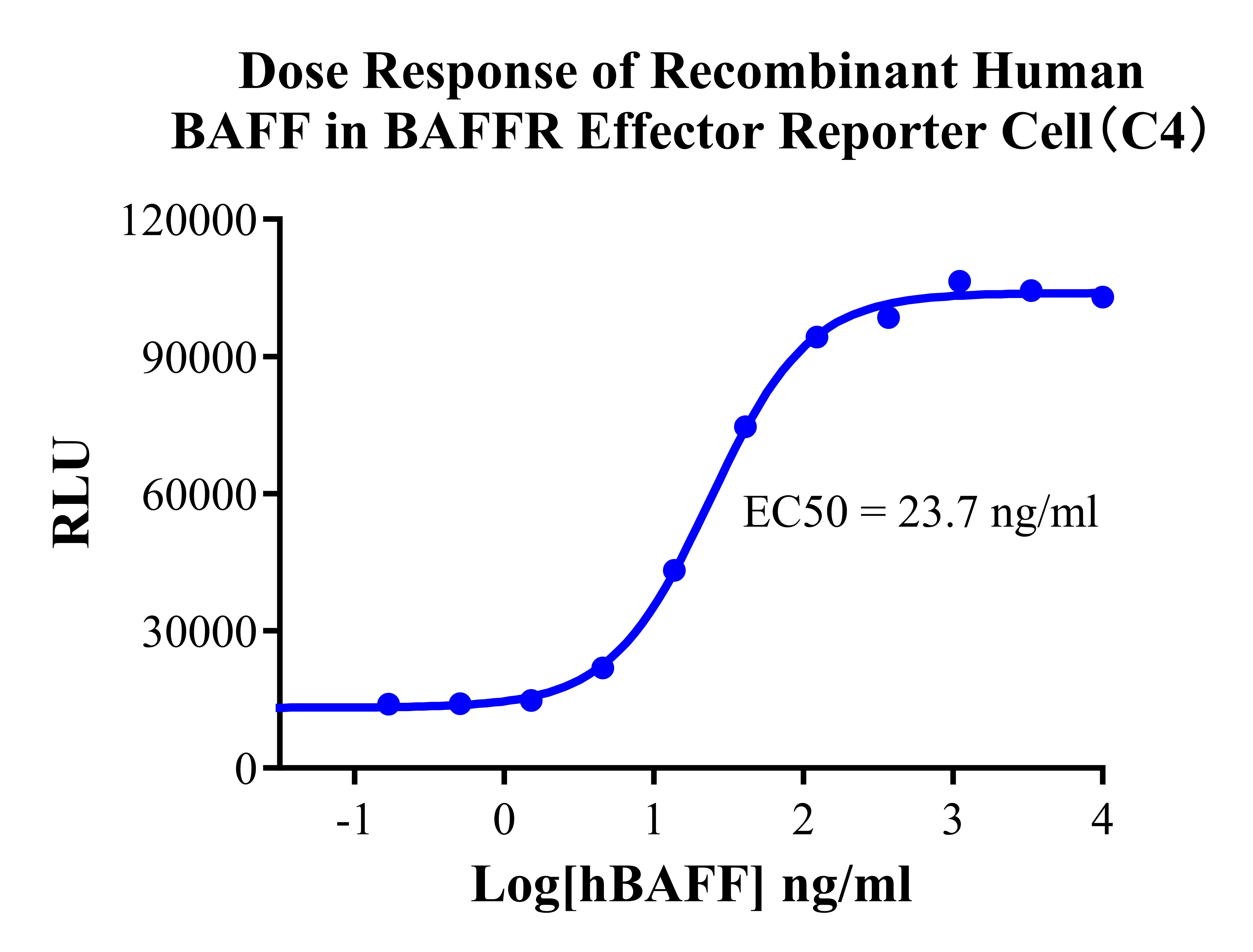 BAFF(B 細胞激活因子,B Cell Activating Factor),也稱為 TNFSF13B(Tumor Necrosis Factor Superfamily Member 13B)或 BLyS(B Lymphocyte Stimulator),是一種屬 于腫瘤壞死因子(TNF)超家族的細胞因子。BAFF 主要由單核細胞、巨噬細胞、樹突狀 細胞和某些基質細胞產生,在 B 細胞的存活、增殖和成熟中起關鍵作用。 BAFF 通過與受體結合,調節(jié) B 細胞的發(fā)育和功能,其過度表達與自身免疫性疾病 (如系統(tǒng)性紅斑狼瘡、類風濕性關節(jié)炎)密切相關。BAFF 有三個主要受體:BAFF-R (BR3)、TACI 和 BCMA。BAFF 與 BAFF-R 結合后,激活 NF-κB 和 PI3K/AKT 通路,促 進 B 細胞的存活和增殖;TACI 介導 BAFF 和 APRIL(另一種 TNF 家族成員)的信號傳導, 調節(jié) B 細胞的活化和抗體產生;BCMA 主要在漿細胞中表達,介導 BAFF 和 APRIL 的信 號傳導,支持漿細胞的存活。BAFF 的過度表達與系統(tǒng)性紅斑狼瘡(SLE)、類風濕性關節(jié) 炎(RA)、干燥綜合等自身免疫性疾病密切相關。 | |
