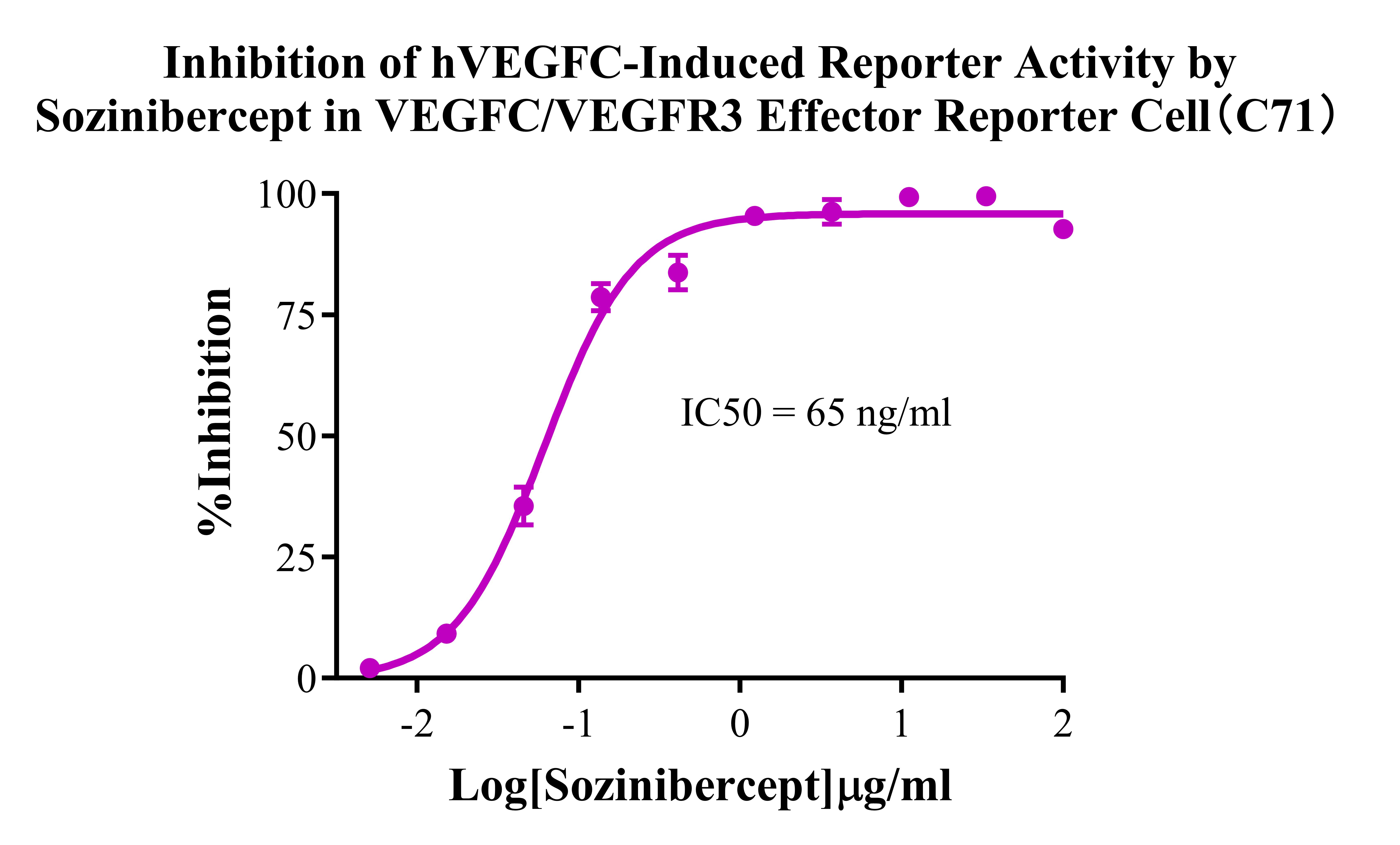 VEGFC/VEGFR3 Effector Reporter Cell 報告基因藥靶模型很好的模擬了體內 VEGFC/VEGFR3 的信號轉導過程,原理見下圖所示。![]() Figure 1. VEGFC/VEGFR3 Effector Reporter Cell 細胞模型原理圖 |