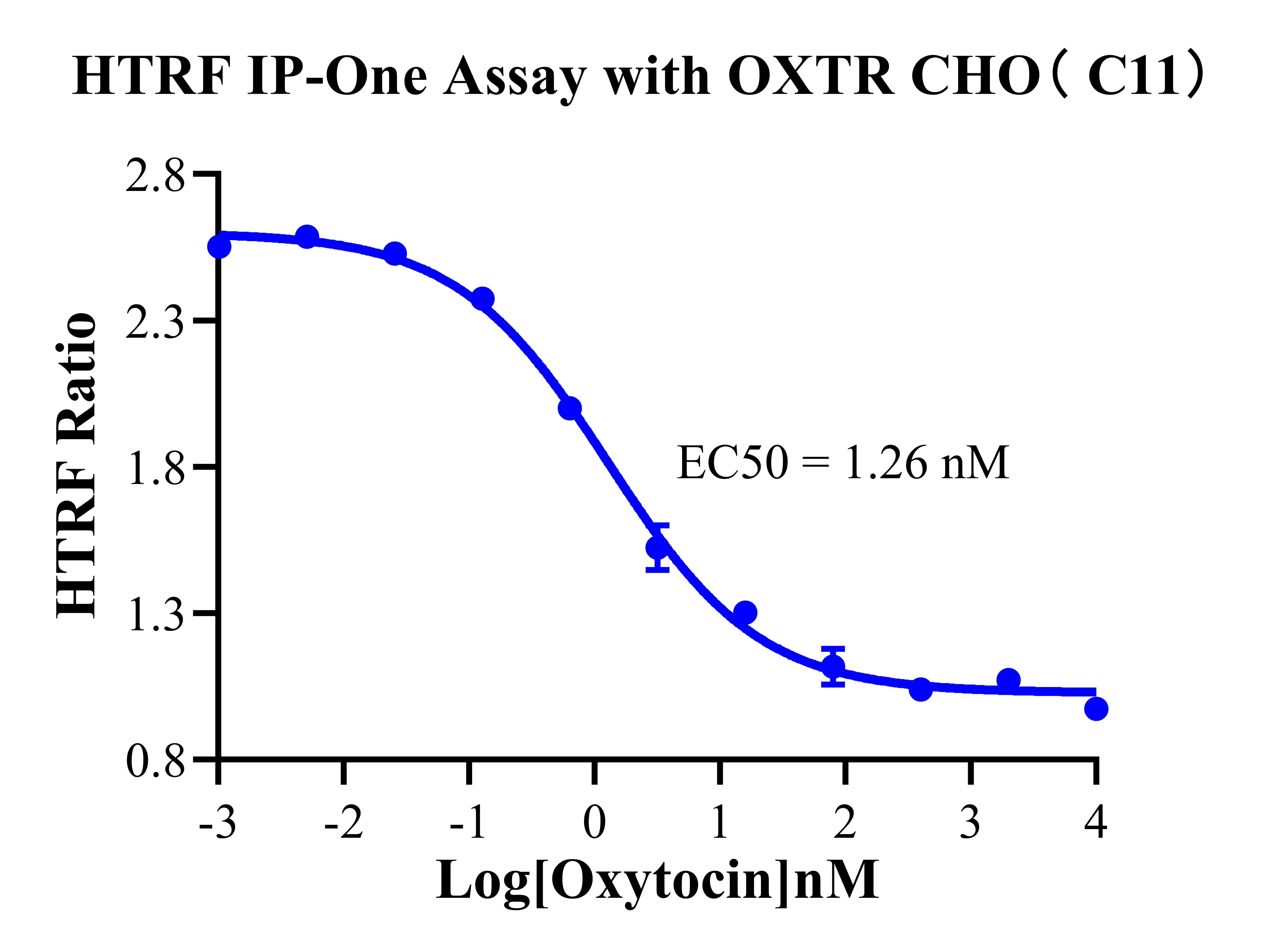 OXTR CHO 細(xì)胞藥靶模型很好的模擬了體內(nèi) OXTR 的信號(hào)轉(zhuǎn)導(dǎo)過程,原理見下圖所示。![]() Figure 1. OXTR CHO 細(xì)胞模型原理圖 |