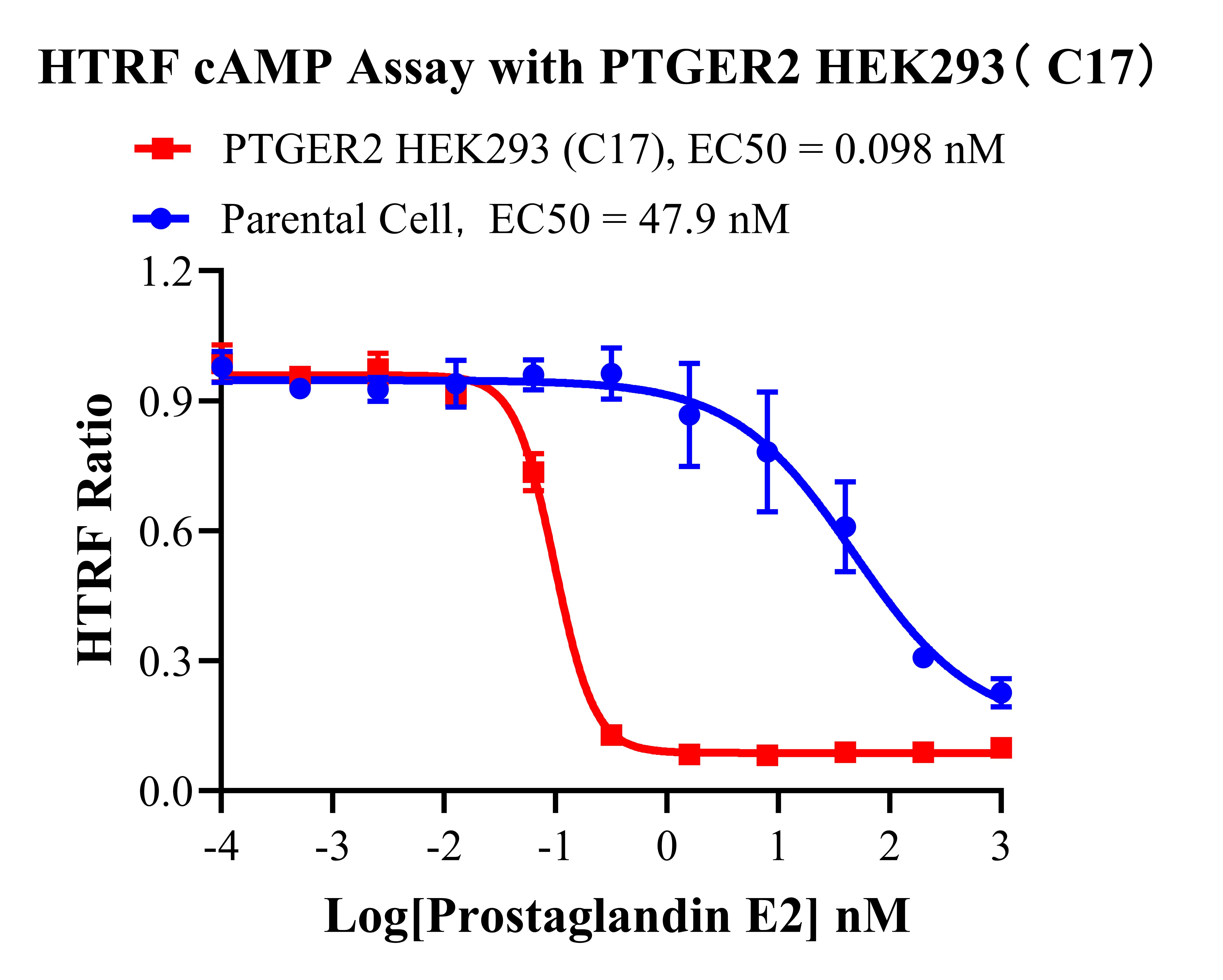 PTGER2 HEK293 細(xì)胞藥靶模型很好的模擬了體內(nèi) PTGER2 的信號轉(zhuǎn)導(dǎo)過程,原理見 下圖所示。