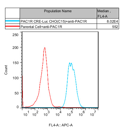 V. Representative Data![]() Figure 1. Recombinant PAC1R CRE-Luc CHO stably expressing PAC1R. ![]() Figure 2. Dose Response of PACAP 1-38 in PAC1R CRE-Luc CHO(C15). ![]() Figure 3. Inhibition of PACAP 1-38 induced Reporter Activity by PACAP38 Neutralization Ab in PAC1R CRE-Luc CHO(C15). |