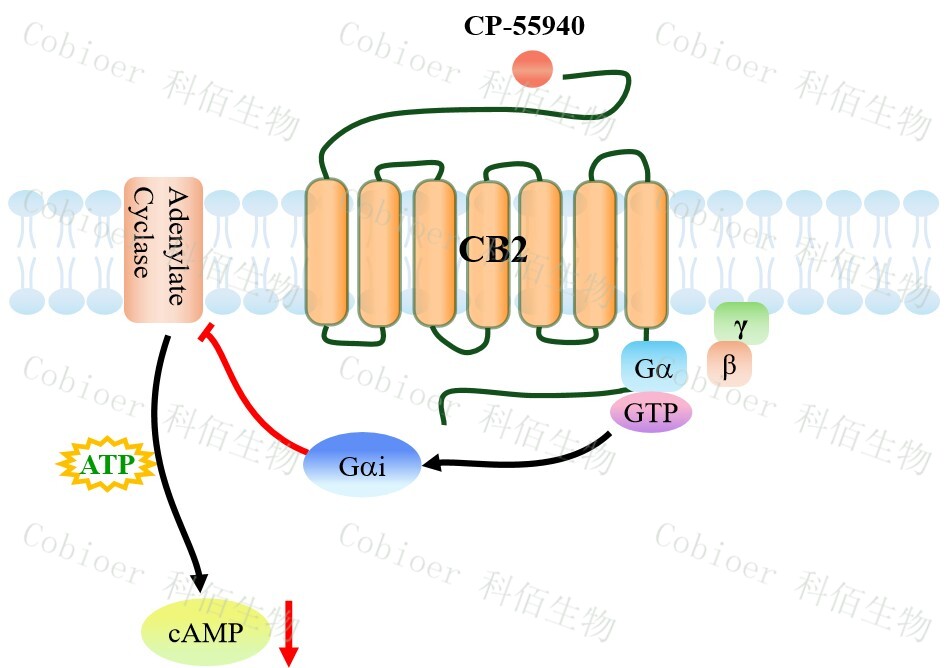cAMP 在 G 蛋白偶聯(lián)受體(GPCR)信號(hào)轉(zhuǎn)導(dǎo)中是一種關(guān)鍵的第二信使。當(dāng)配體結(jié)合到 GPCR,構(gòu)象發(fā)生變化,激活受體接著激活 G 蛋白,Gi 的激活導(dǎo)致腺苷酸環(huán)化酶調(diào)控 cAMP 的下調(diào)。CB2 CHO 藥靶模型很好的模擬了體內(nèi) CB2 的信號(hào)轉(zhuǎn)導(dǎo)過(guò)程,原理見(jiàn)下圖所示。![]() Figure 1. CB2 CHO 細(xì)胞模型原理圖 |