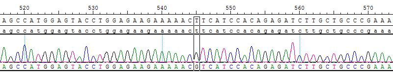 2. Sanger of BCR-ABL1 [Y253H/F359V]/BaF3 Figure 2. BCR-ABL1 [Y253H/F359V]/BaF3 Y253H Figure 3. BCR-ABL1 [Y253H/F359V]/BaF3 F359V |