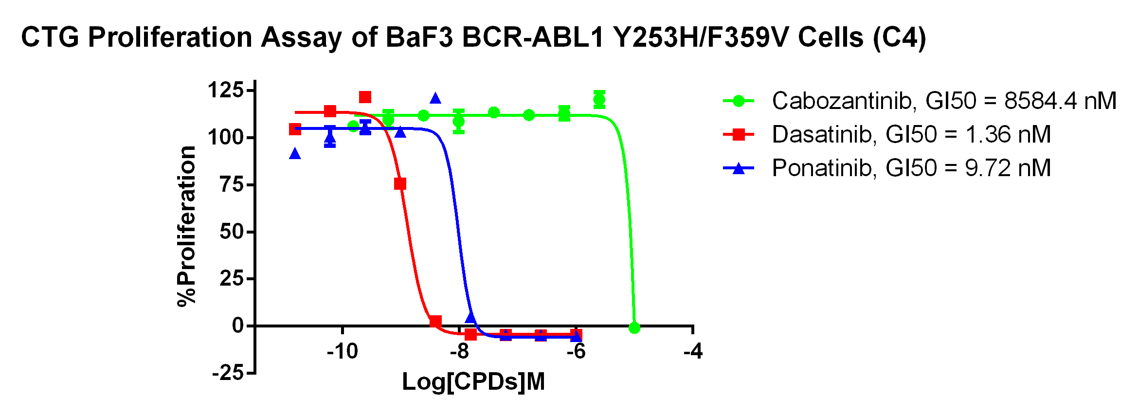 3. Anti-proliferation assay Figure 4. CTG Proliferation Assay of BaF3 BCR-ABL1 Y253H/F359V Cells (C4). |