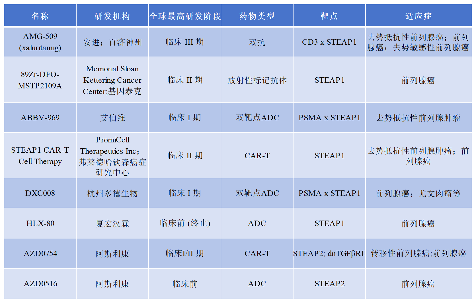 關(guān)于STEAP1/2在研的部分藥物進展如下表所示: